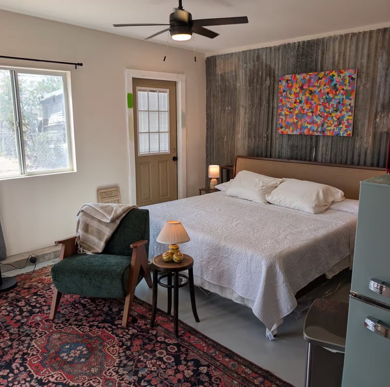 This cozy hideaway is full of charm and character! Close to White Sands National Monument and The Organ Mountain Desert Peaks National Park. 1 bed/1 bath, seating area, full kitchen to include a washer and dryer, this stay will immerse you in a mix of Boho and Mexican culture. There is off-street parking for one vehicle, a queen bed and a bathroom with a tub/shower combination. Very centrally located, you will be 5-10 minutes to both the University and the famed Las Cruces Farmers Market.