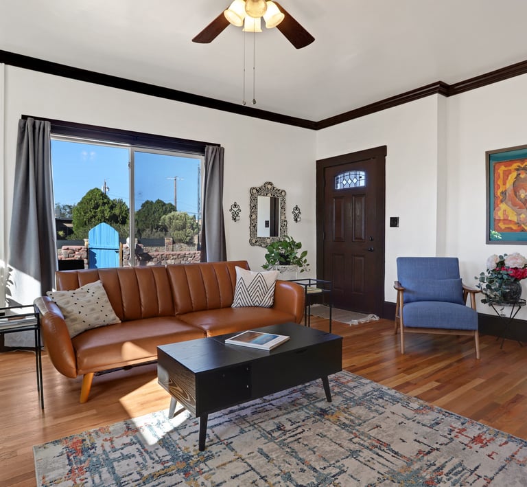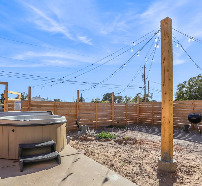 Sleeps up to six guests! 1 bedroom with queen bed, a bunk bed, and a futon w/ 1 bath, full kitchen and washer dryer. Did we mention there's a hot tub?! Beautiful historic home in a fantastic location close to downtown Las Cruces.